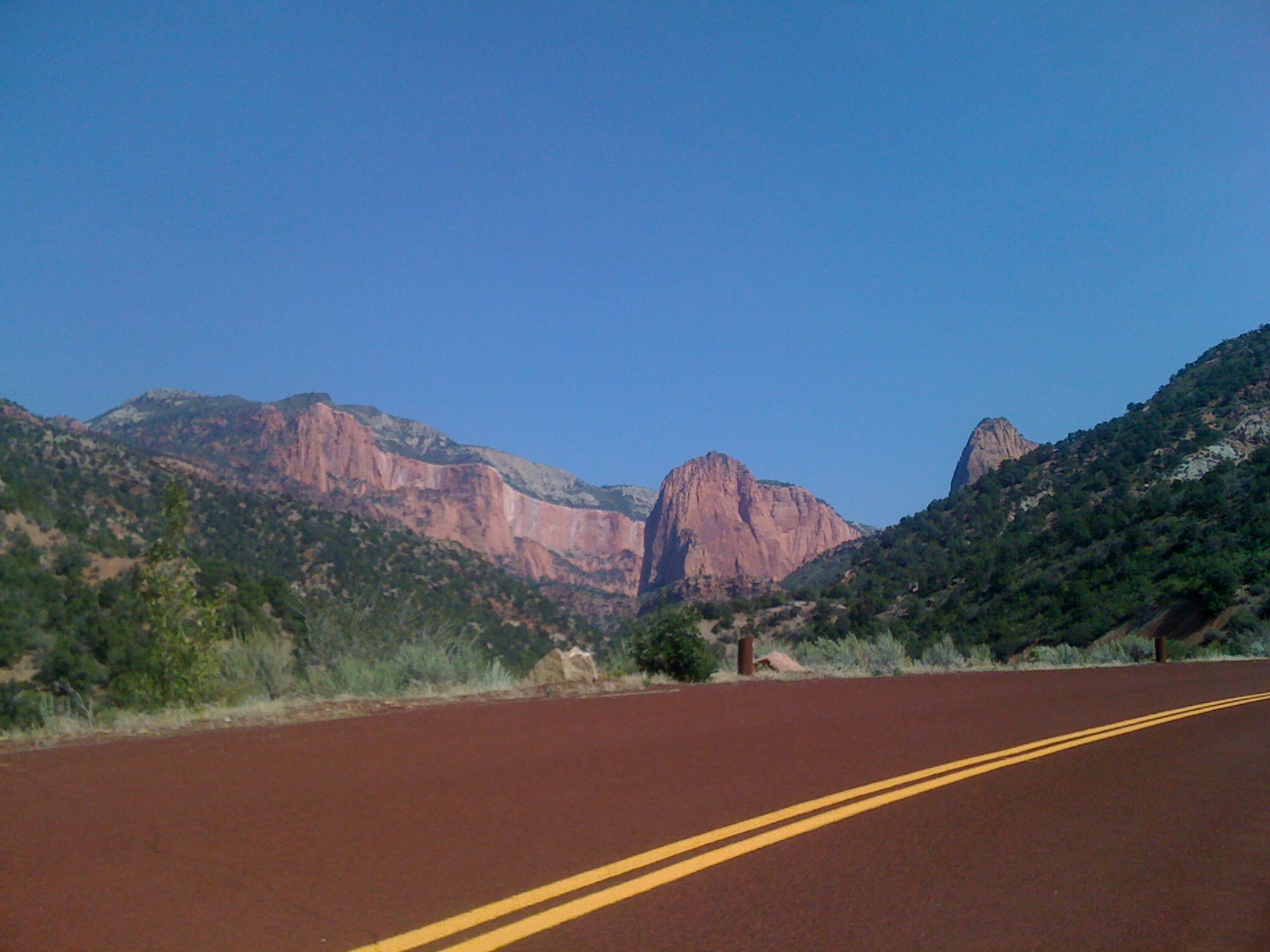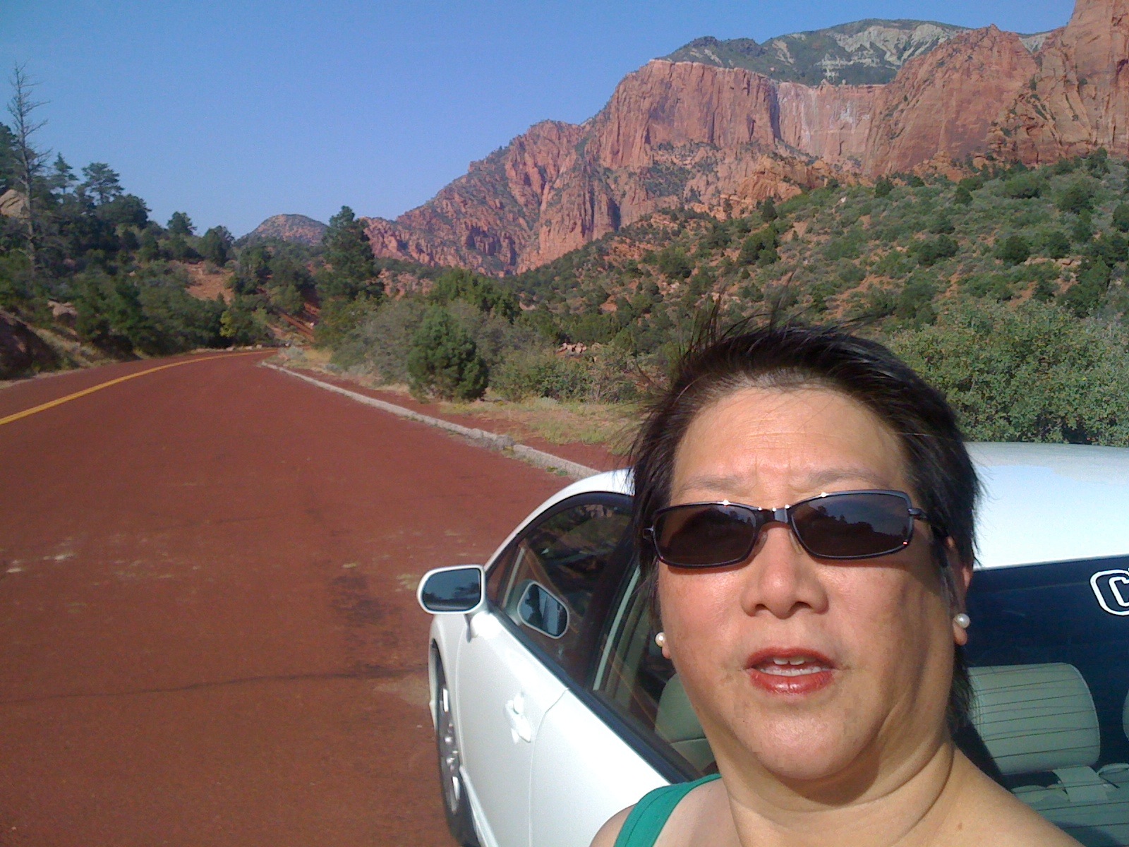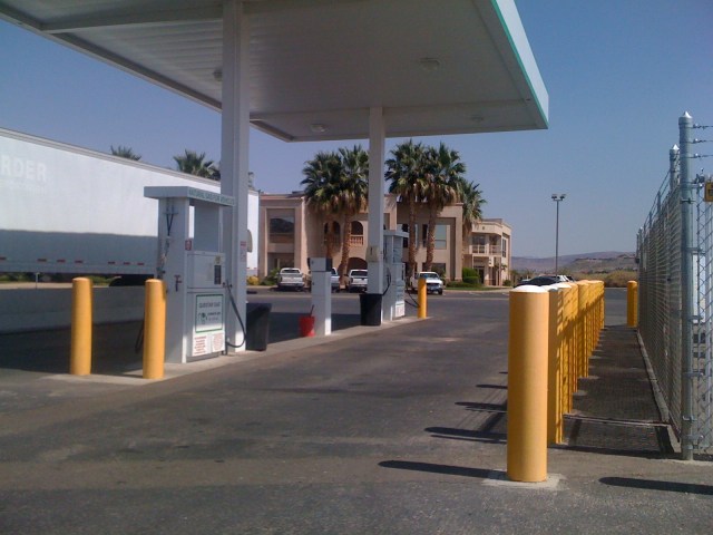 Crazy start of day. Too much new stuff to learn all at once (… batch upload of pics for blogging, car navigation system, tracking device, GoPro video camera, new iPhone 5, tweeting). Almost had nuclear meltdown as we realized, heading out of Vegas, there was only 1 bar (of 20) of fuel left. Luckily was able to head back to the station and fill “again” (or at least remember to activate the pump after hooking up and getting the credit card approved a second time). All this and forgetting the time zone change (which IS factored into my planning worksheet), put us behind schedule. So we rolled into Washington City at 3:30 pm (MT) instead of 1:00. Luckily the Clean City Coordinator, Robin Erickson, was able to notify the appropriate folks about the change in time.
